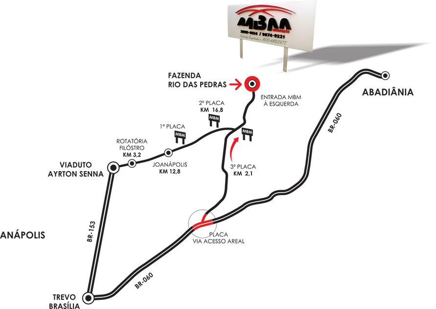 © 2013 MBM Mineração Ltda. Fazenda Rio das Pedras, Abadiânia - Goiás • Administração: Av. Brasil Sul, Nº 560, Centro, Anápolis - Goiás - CEP: 75.115-260.